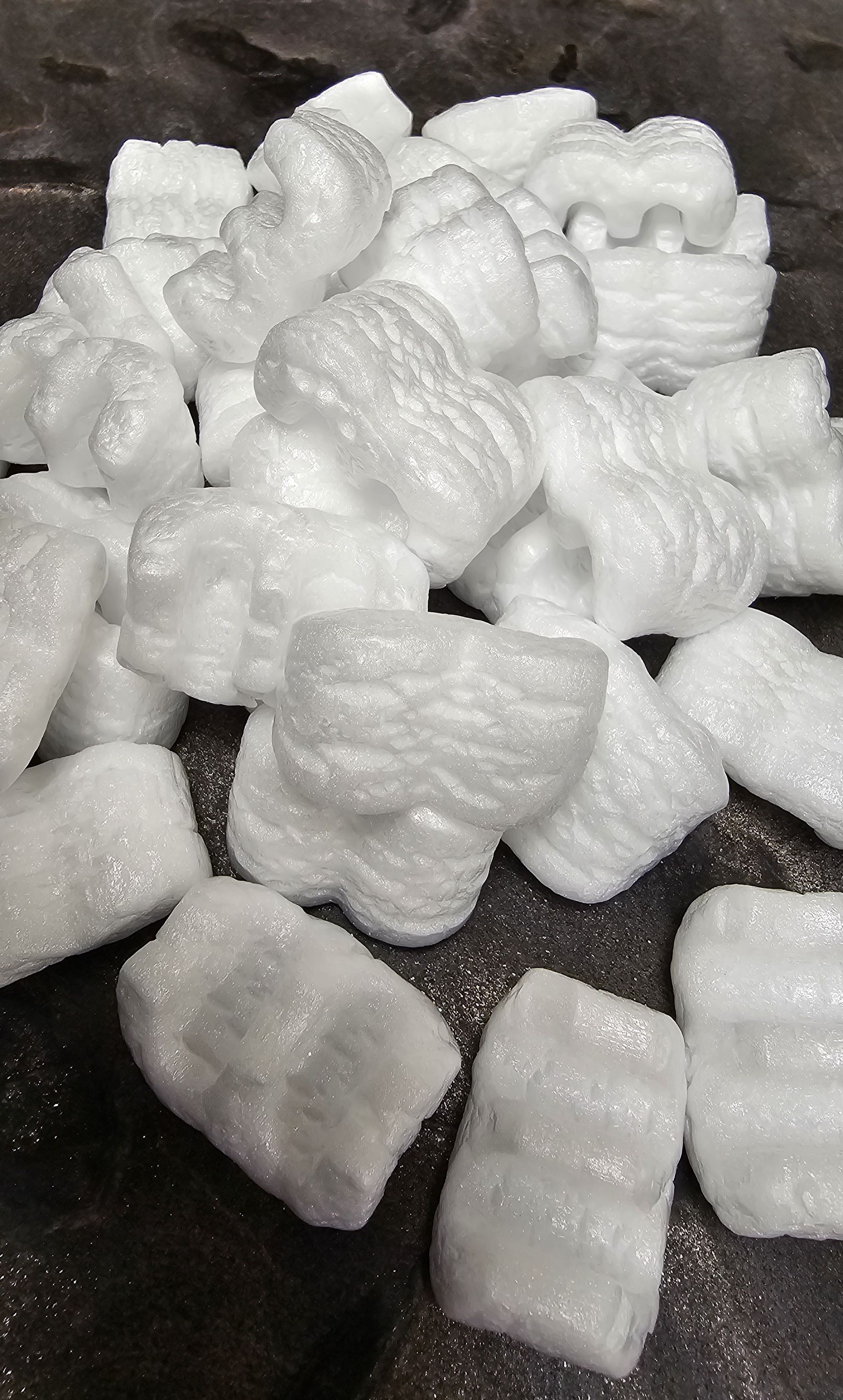 EPS Foam Peanuts (foam popcorn) are a common loose-fill packaging and cushioning material used to prevent damage to fragile objects during shipping. These are some advantages over other conventional packaging materials: extremely light 99% air, effective cushioning material, it absorbs shock, secure protection, locks the product in place, easy to use, flowable, 100% recyclable, reusable, very good resilience, antistatic, odorless, low thermal conductivity. 65ºc maximum service temperature, non-toxic, resistant to most acids and alkalis.